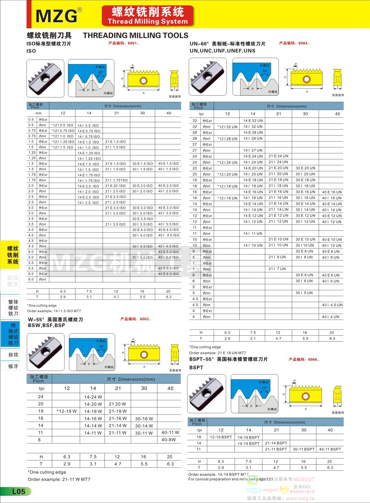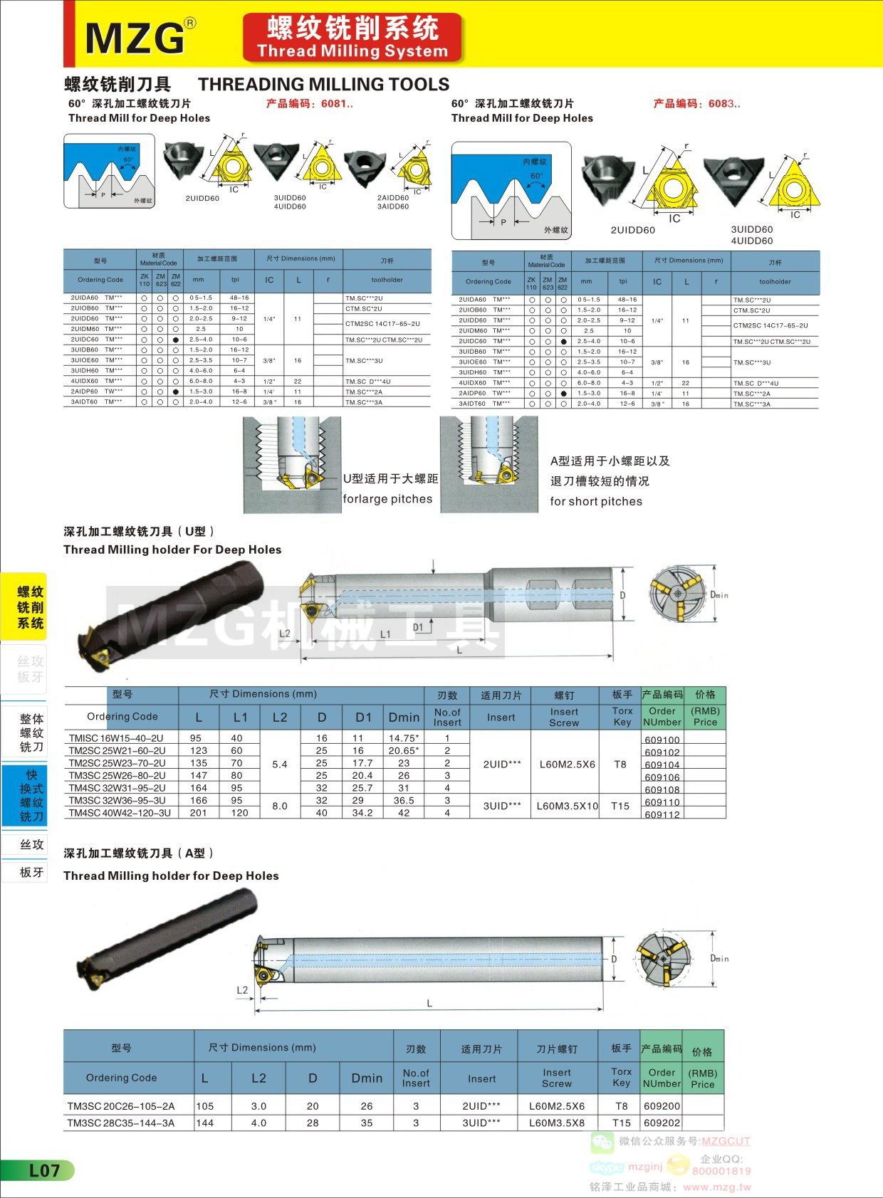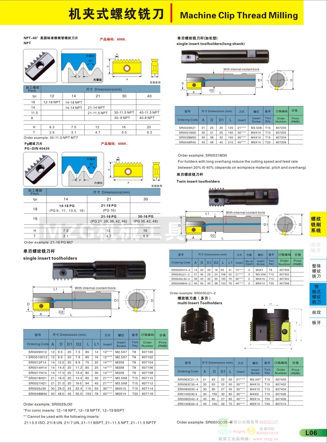 MZG品牌螺紋銑削刀具系統(tǒng)產(chǎn)品技術(shù)參數(shù)配件組成信息