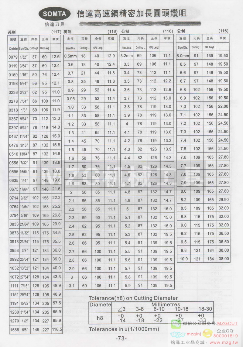 SOMTA信達(dá)高速鋼精密圓頭鉆咀產(chǎn)品技術(shù)參數(shù)配件組成信息