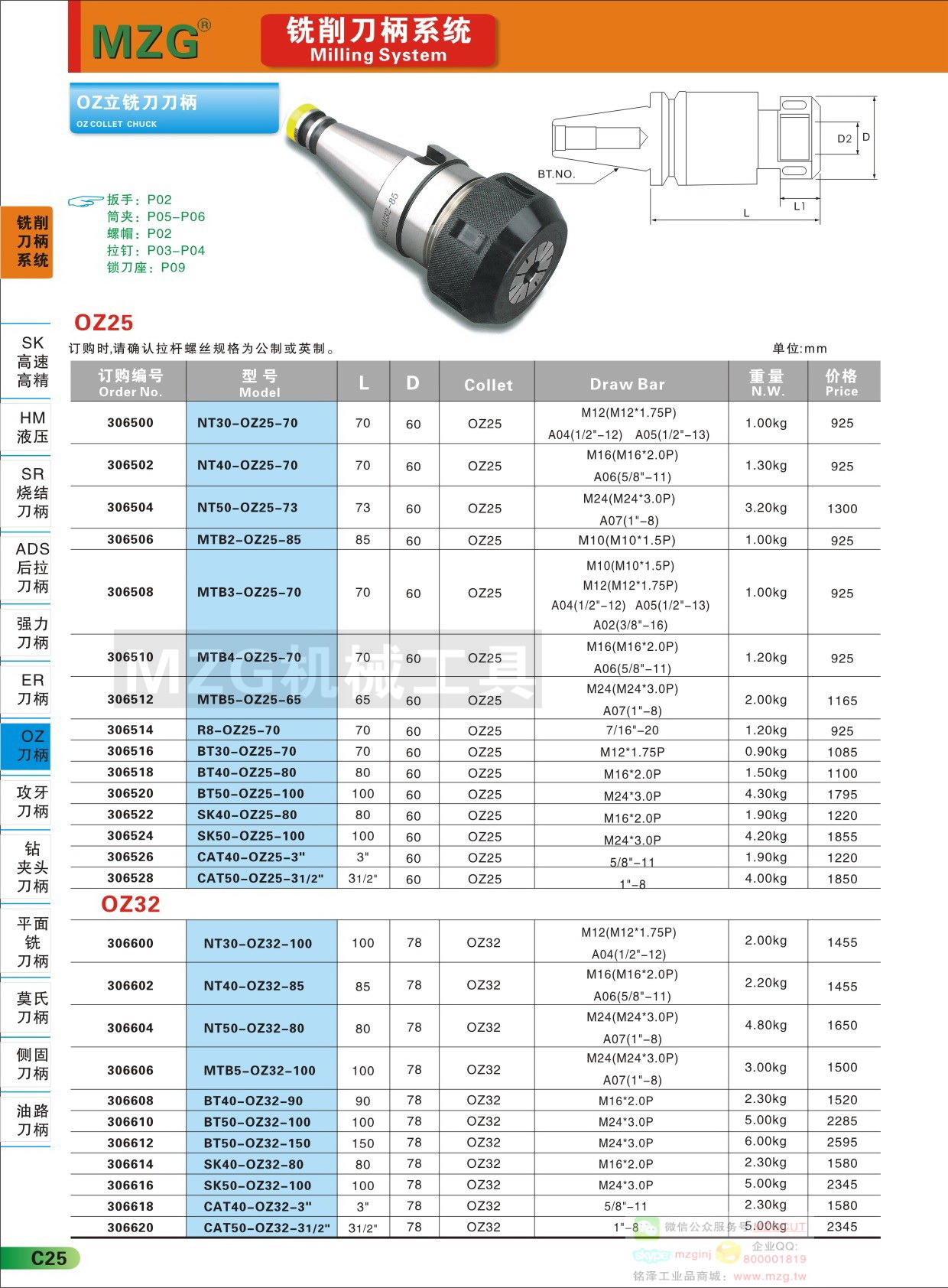 MZG品牌數(shù)控刀柄產(chǎn)品技術(shù)參數(shù)配件組成信息