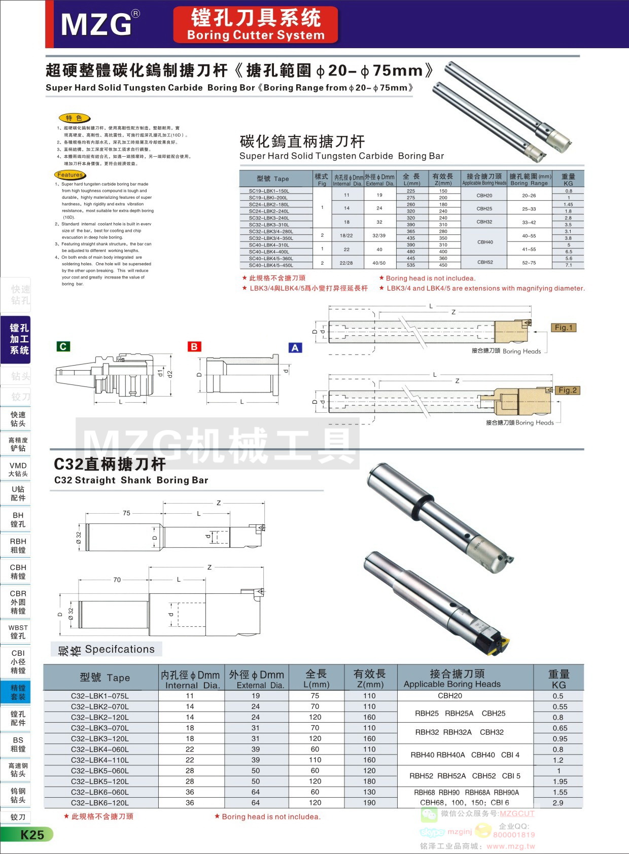 MZG品牌搪孔系統(tǒng)產(chǎn)品技術(shù)參數(shù)配件組成信息