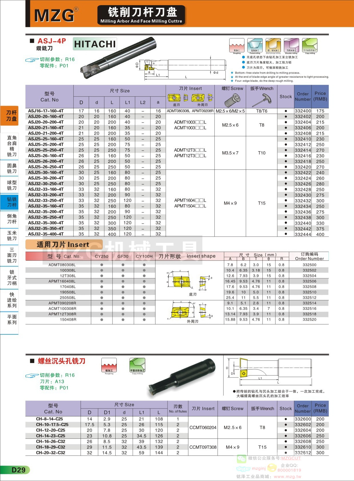 MZG品牌機(jī)夾式鉆孔銑削兩用銑刀產(chǎn)品技術(shù)參數(shù)配件組成信息