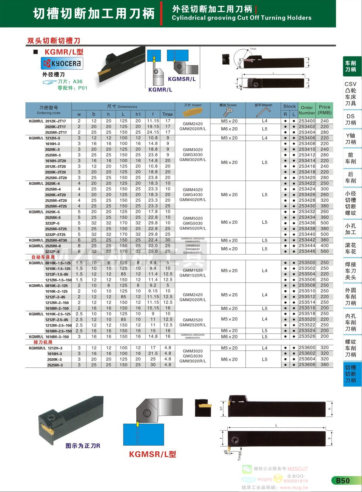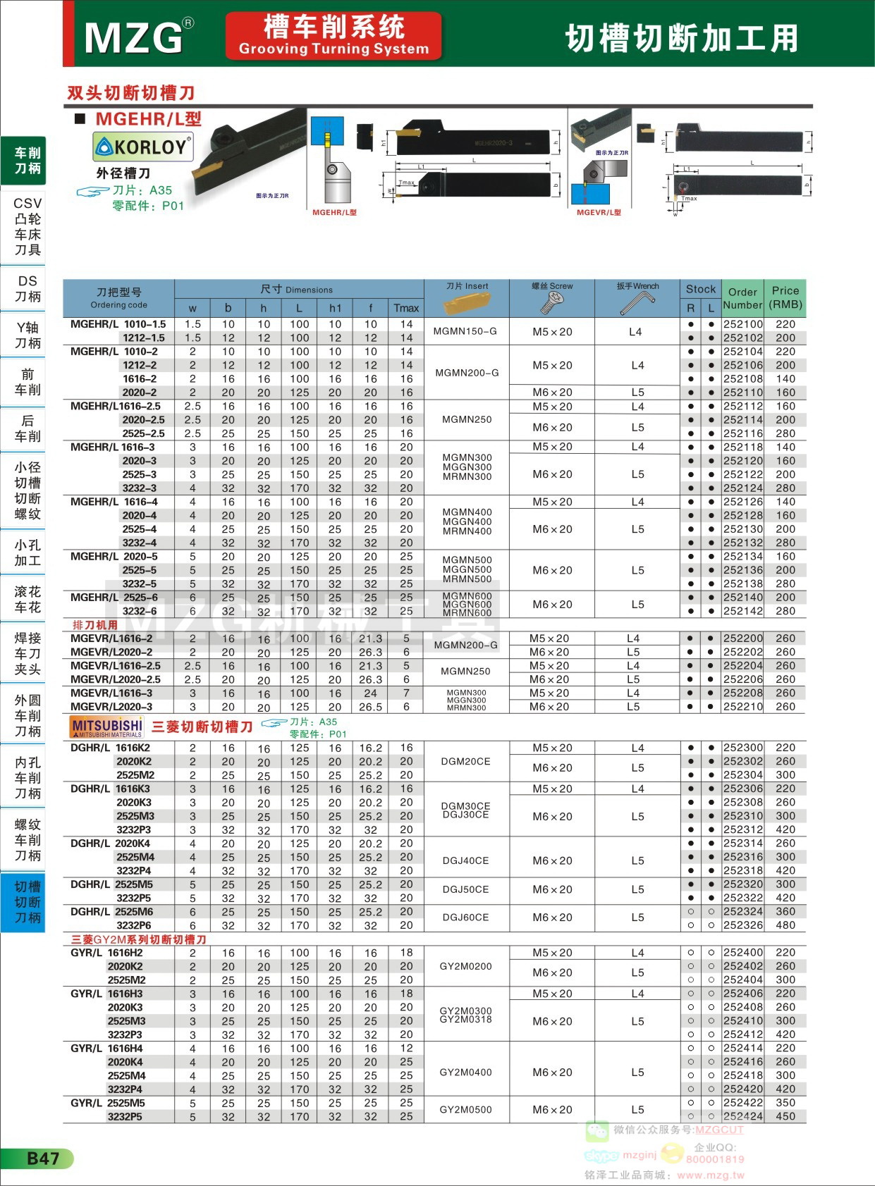 MZG數(shù)控刀具KORLOY切槽切斷刀片刀桿MGMN系列產(chǎn)品技術(shù)參數(shù)配件組成信息