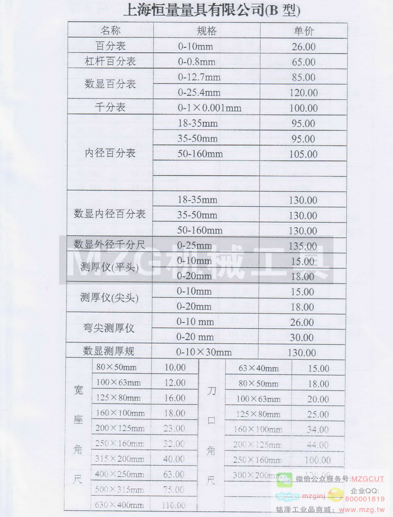 MZG機械工具產(chǎn)品技術(shù)參數(shù)配件組成信息