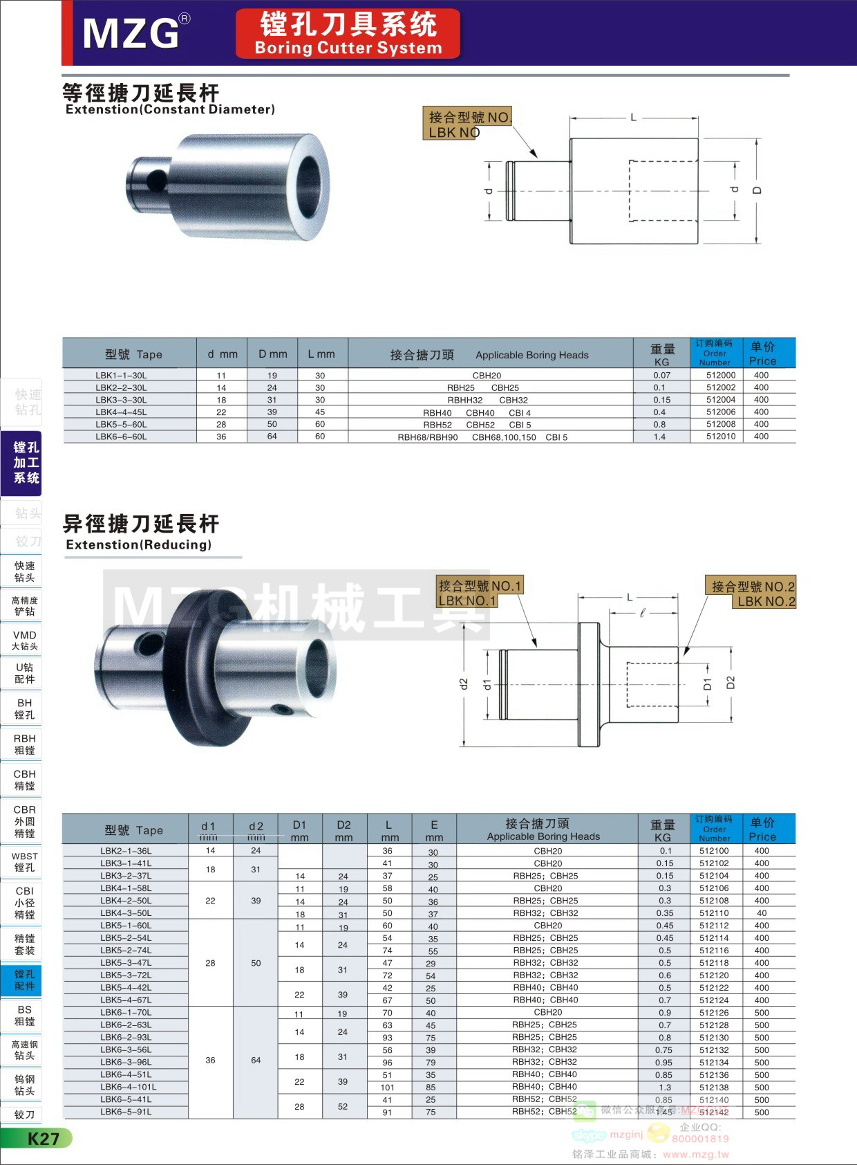 MZG品牌搪孔系統(tǒng)產(chǎn)品技術(shù)參數(shù)配件組成信息