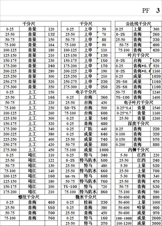 精密測量工具產(chǎn)品技術(shù)參數(shù)配件組成信息