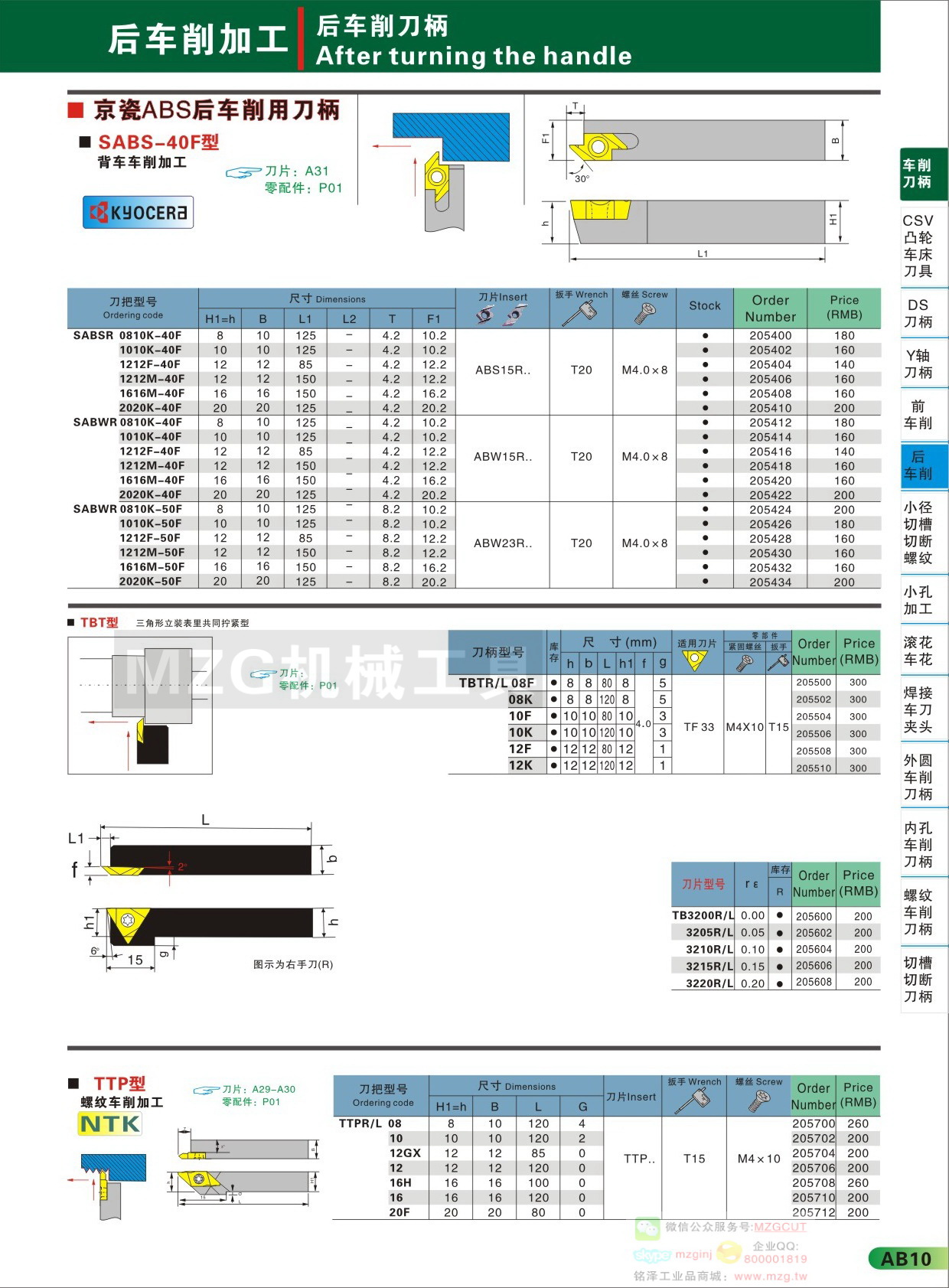 MZG數(shù)控刀具ABS/ABW小零件后車削刀具刀片產(chǎn)品技術(shù)參數(shù)配件組成信息