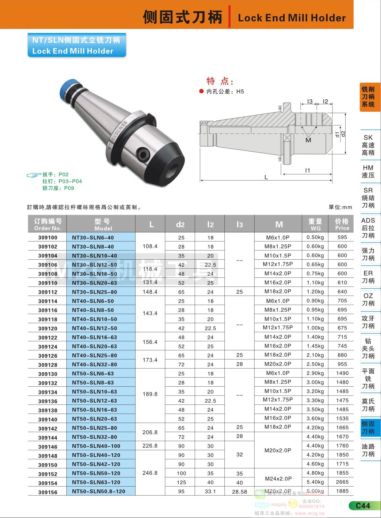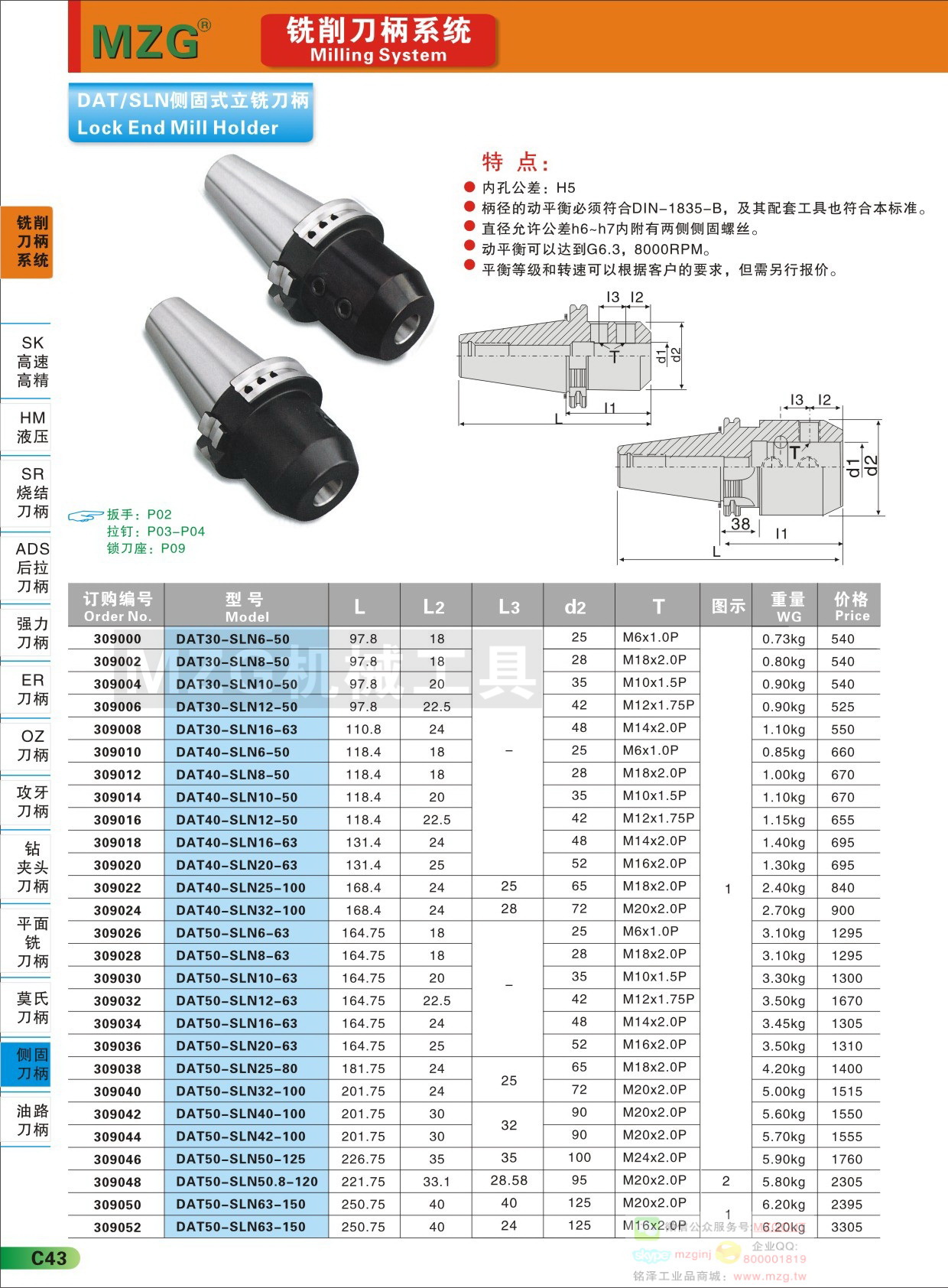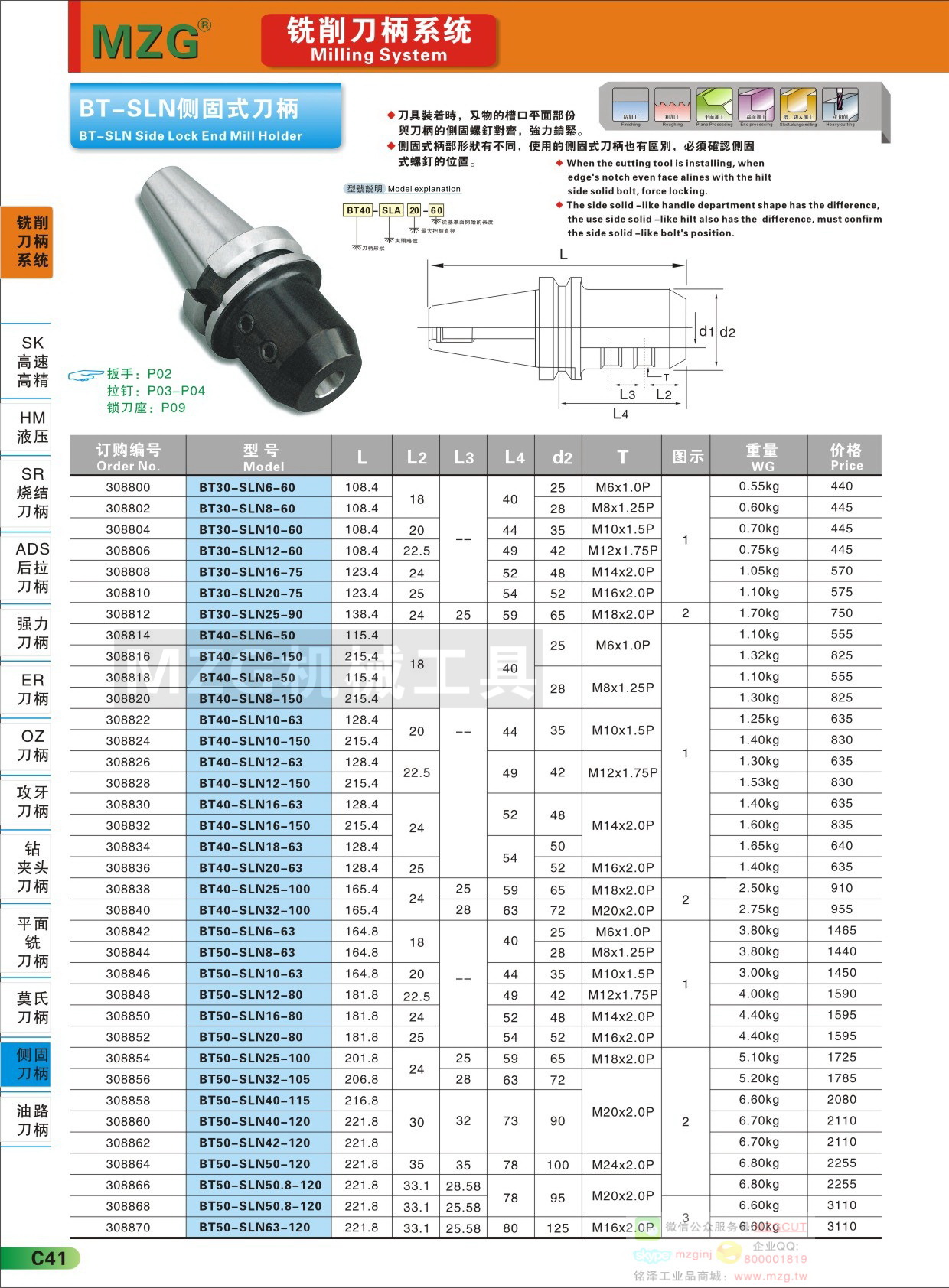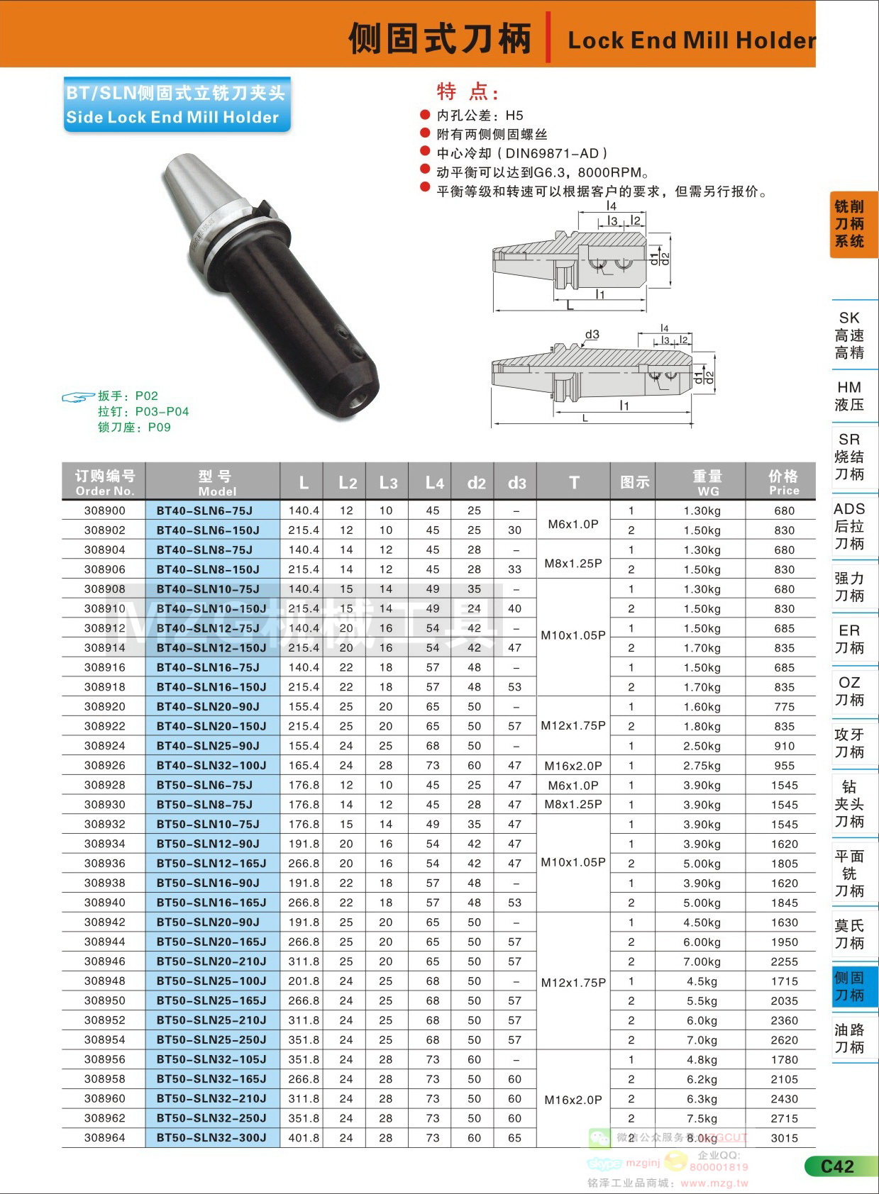 MZG數(shù)控刀具SLA側固式刀柄產品技術參數(shù)配件組成信息