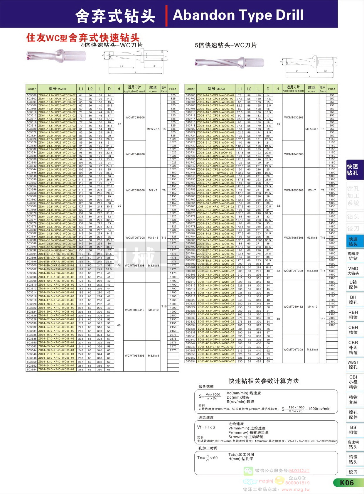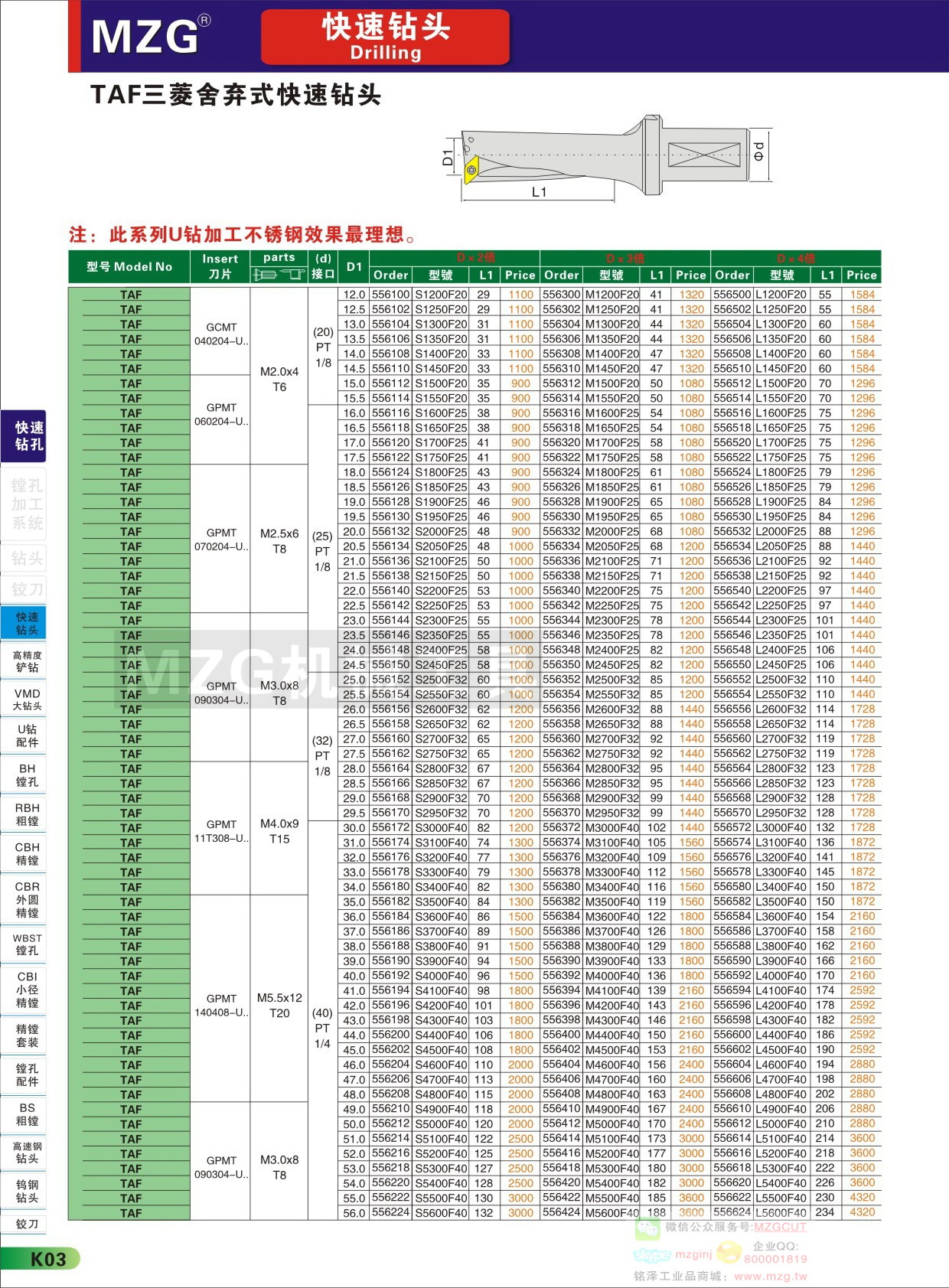 MZG品牌快速鉆頭U鉆產(chǎn)品技術(shù)參數(shù)配件組成信息