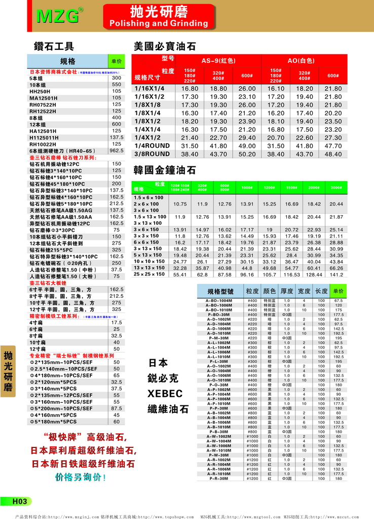 ★拋光研磨:必寶油石,金鐘油石,BEST一品鉆石工具,力全氣動(dòng)工具,紅鷹砂紙,犀利頓纖維油石等…